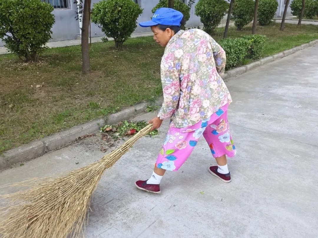 毓秀社区物业工作人员打扫社区公共区域的卫生,营造良好的社区环境。