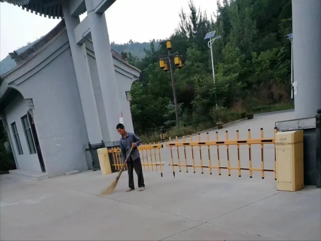西川社区物业工作人员打扫社区公共区域的卫生,营造良好的社区环境。