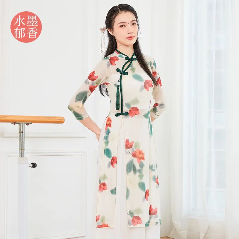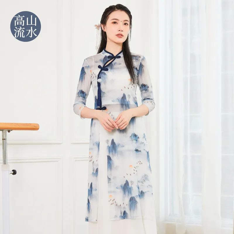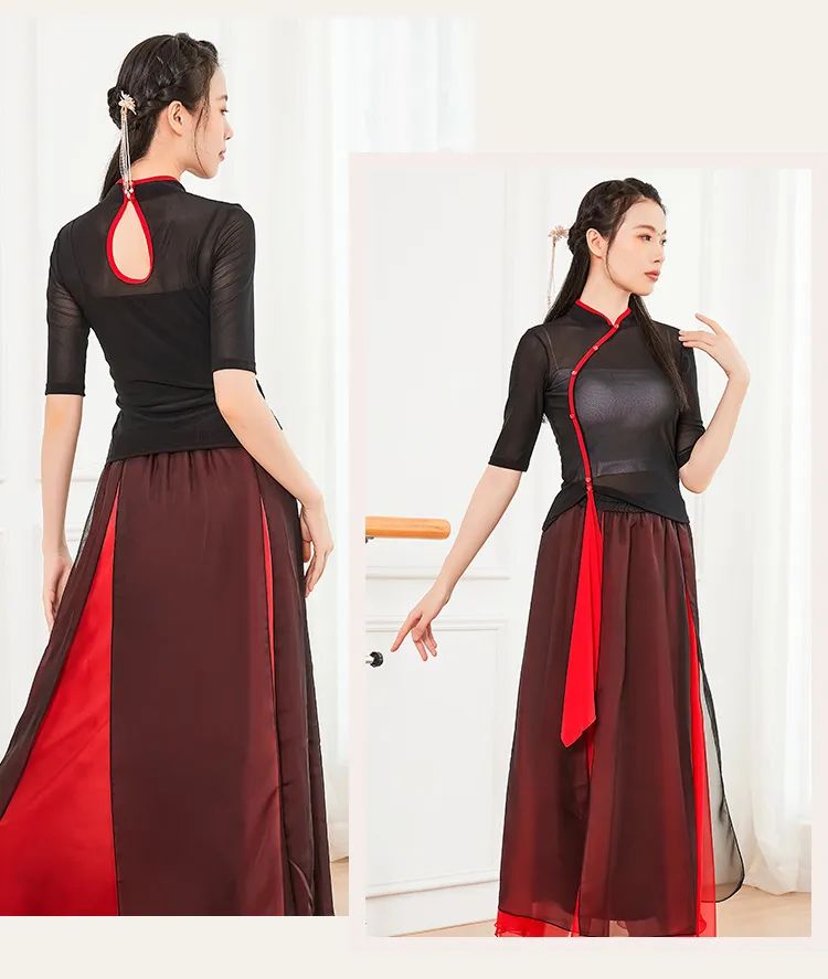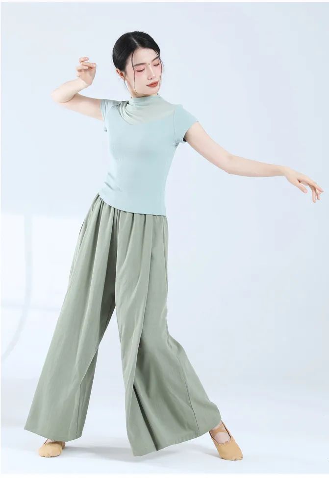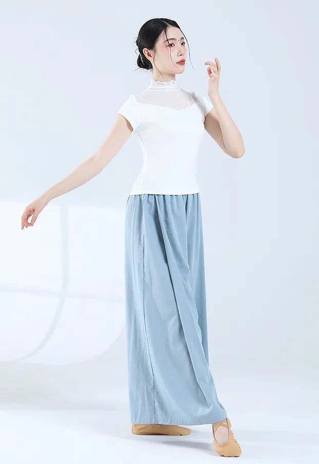 上衣加密弹力网,裙裤珍珠雪纺,9分裤莱卡棉