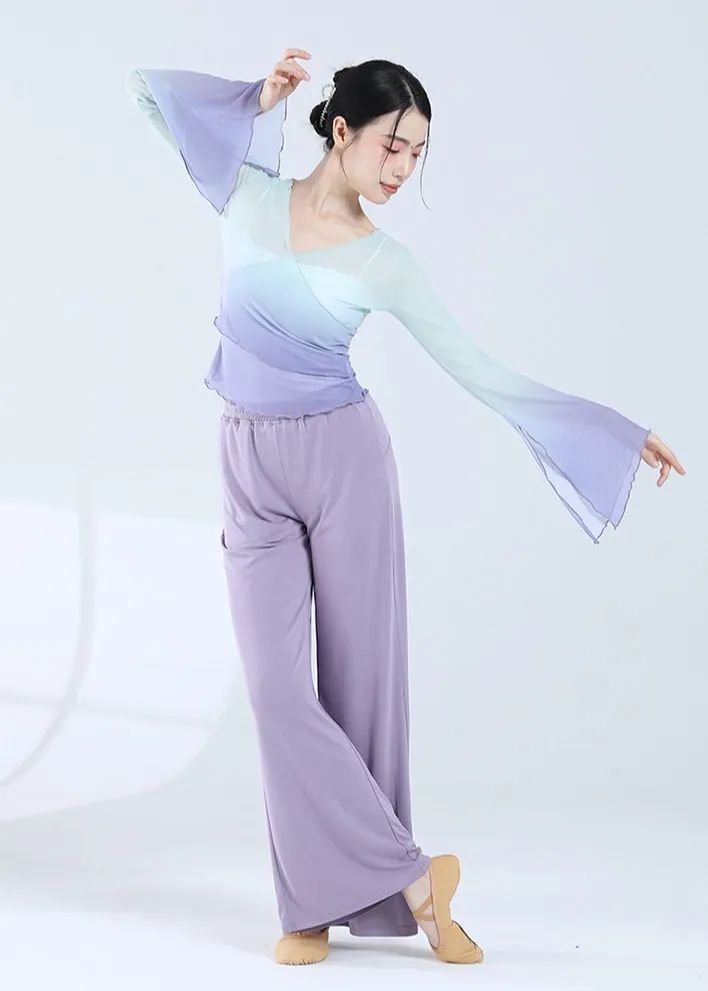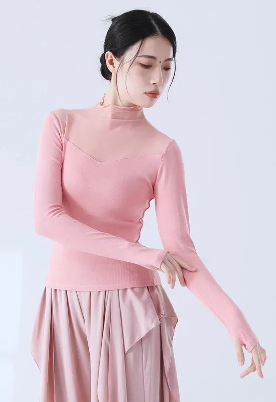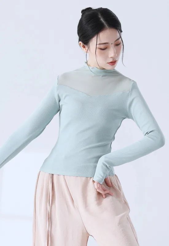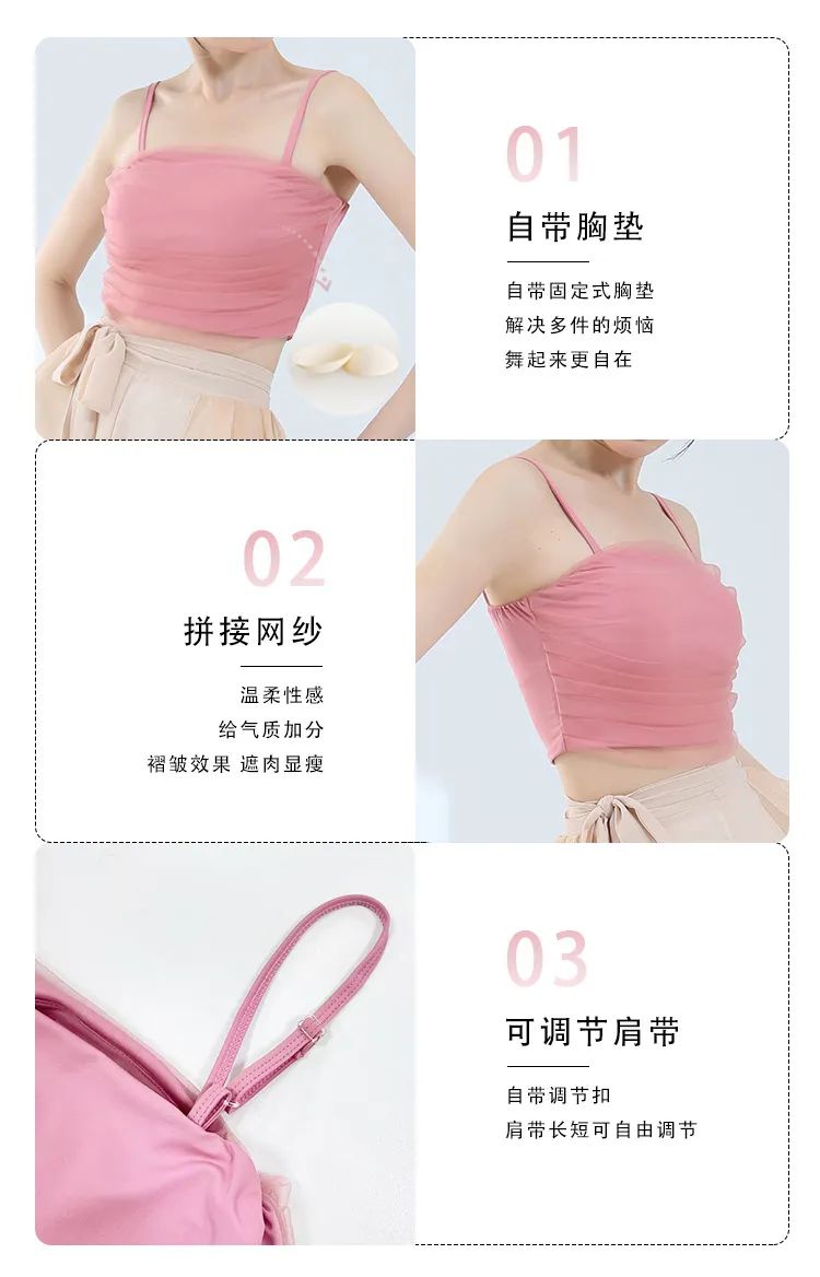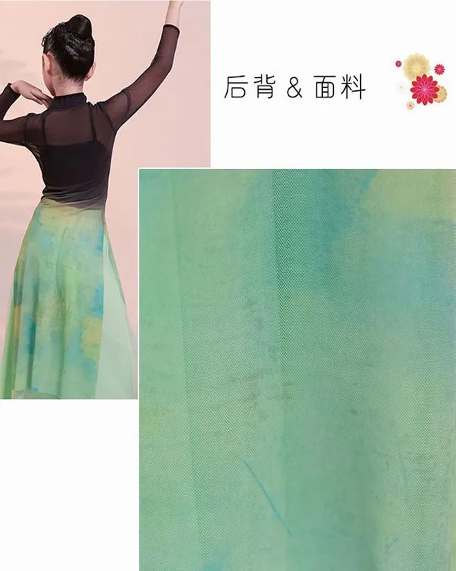 上衣螺纹面料+高弹网纱+铜氨丝裤子