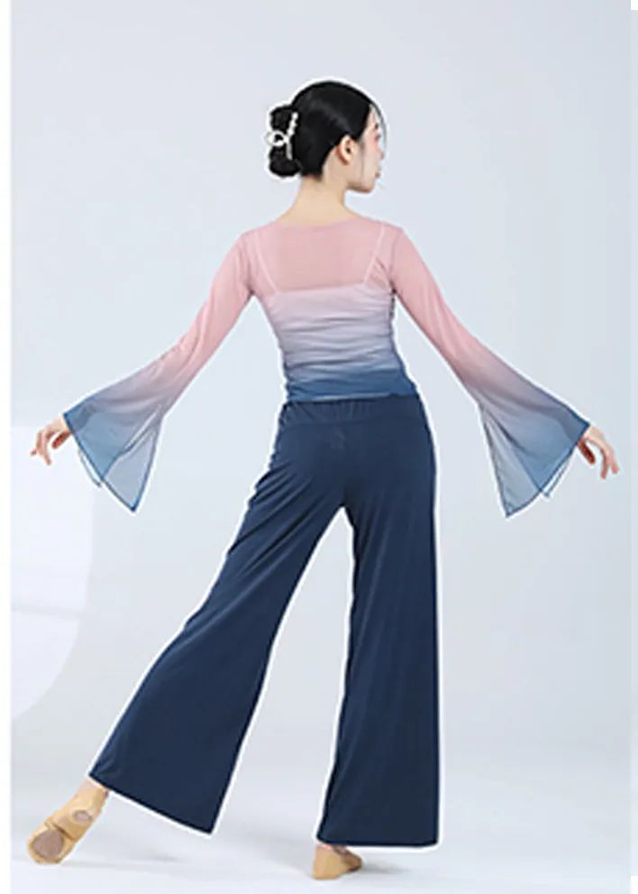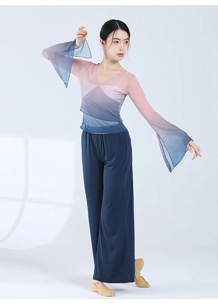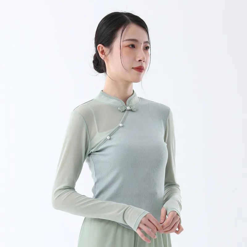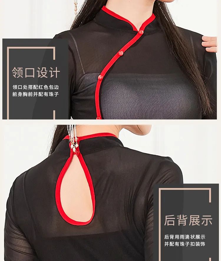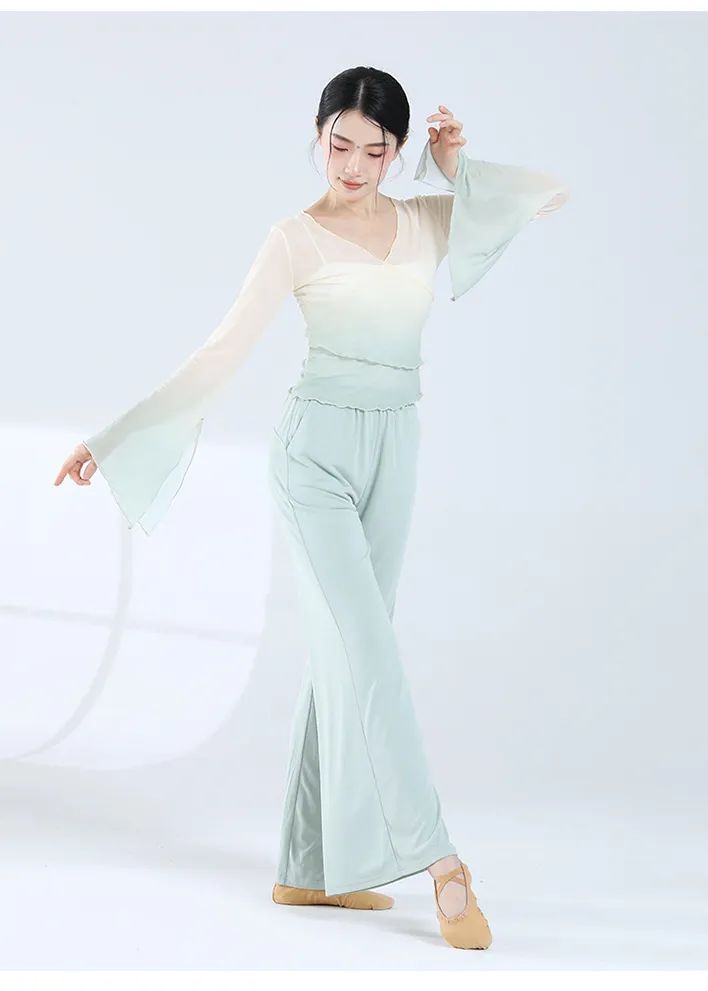 上衣螺纹面料+高弹网纱+铜氨丝裤子