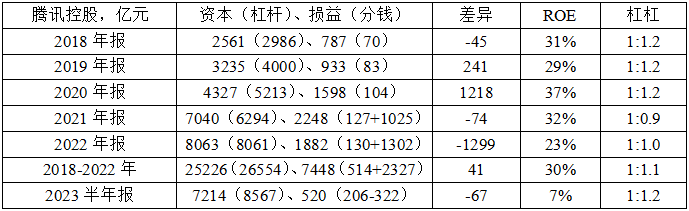 1、2018-2022年ROE30%、杠杆较高,差异很多、主要为投资(随市场波动)。