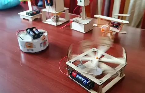 随后为孩子们发放“扫地机器人、鼓风机、滑翔机、台灯”等科创材料包,耐心讲解它的制作原理和使用原理,带领孩子们按步骤开始制作。