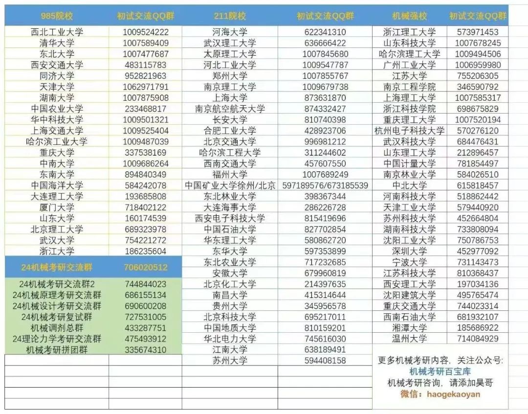 机械考研择校咨询等信息