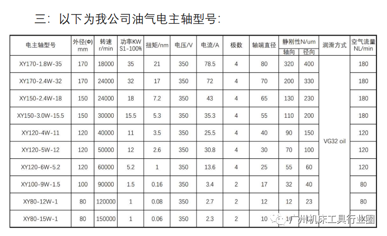 复杂形状的零件尺寸的精度磨削。三:以下为我公司油气电主轴型号: