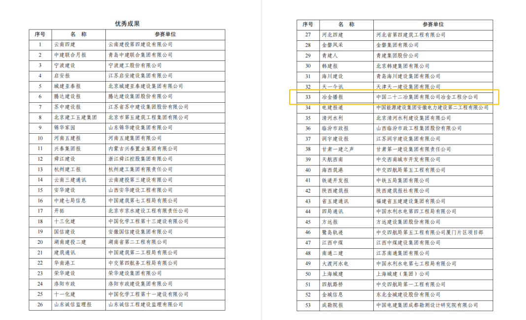 8月16-18日,由中国施工企业管理协会主办的2023年工程建设行业文化大会在湖北武汉召开。会上对2023年工程建设企业文化作品竞赛结果进行了发布和表彰,冶金公司《冶金播报》荣获报纸竞赛优秀成果奖。