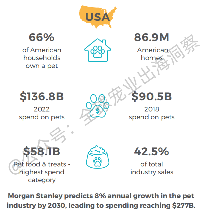 另据摩根士丹利(Morgan Stanley)发布的预测,到2030年,美国宠物行业的年增长率将达到8%,支出或达到2770亿美元。
