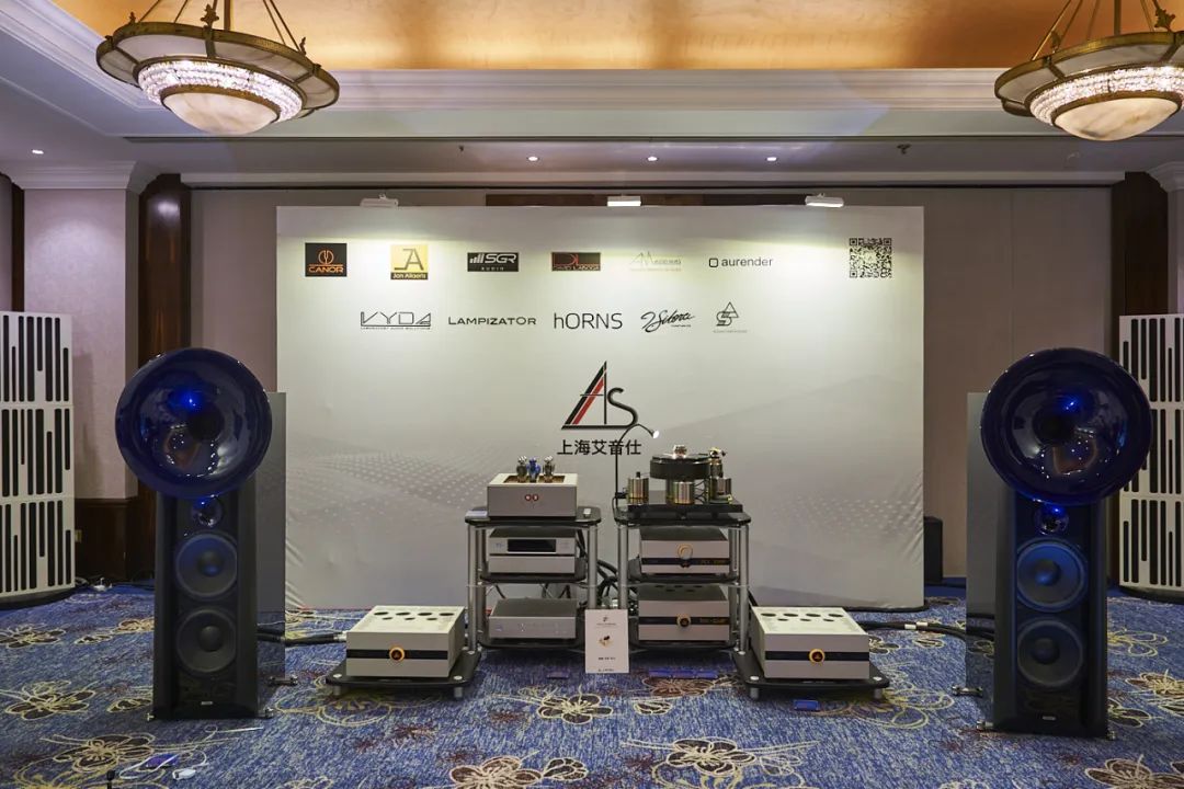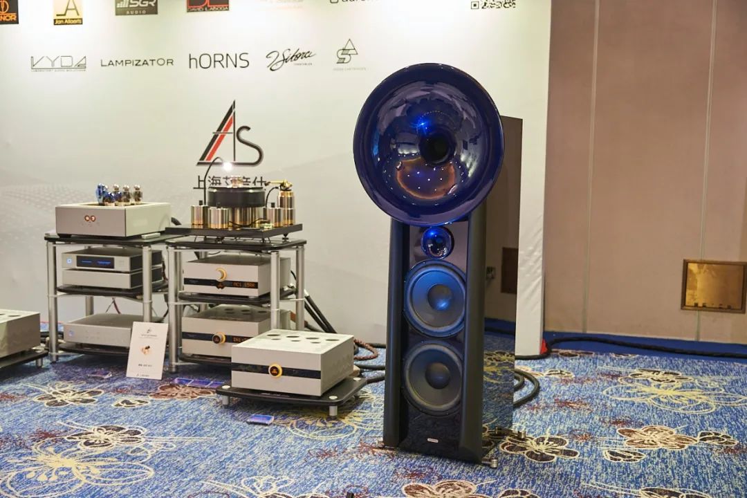 再好的搭配,也需要强力的喇叭来最终呈现。本次上海HiFi说展会,上海艾音仕精心挑选了在德国慕尼黑展会上大放异彩的双十二寸低音喇叭。这款气势恢宏的顶级号角喇叭,拥有雕塑般高雅的外观造型和蓝色和黑色搭配的奢华贵气。本次上海展,这对双十二寸喇叭把我们系统美妙的声音发挥得淋漓尽致,将前端众旗舰设备的实力全部发挥了出来,从经典流行到古典大作,曲曲如生,声声入胜,现场听众欲罢不能!