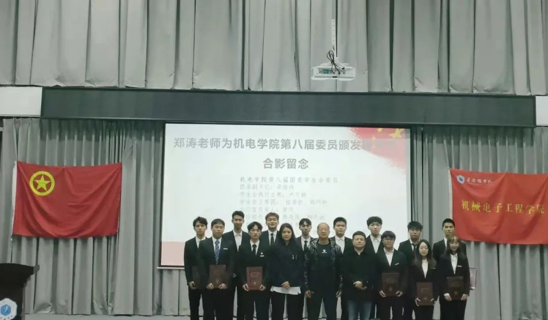 郑涛老师为机电学院第八届委员颁发聘书并合影留念。