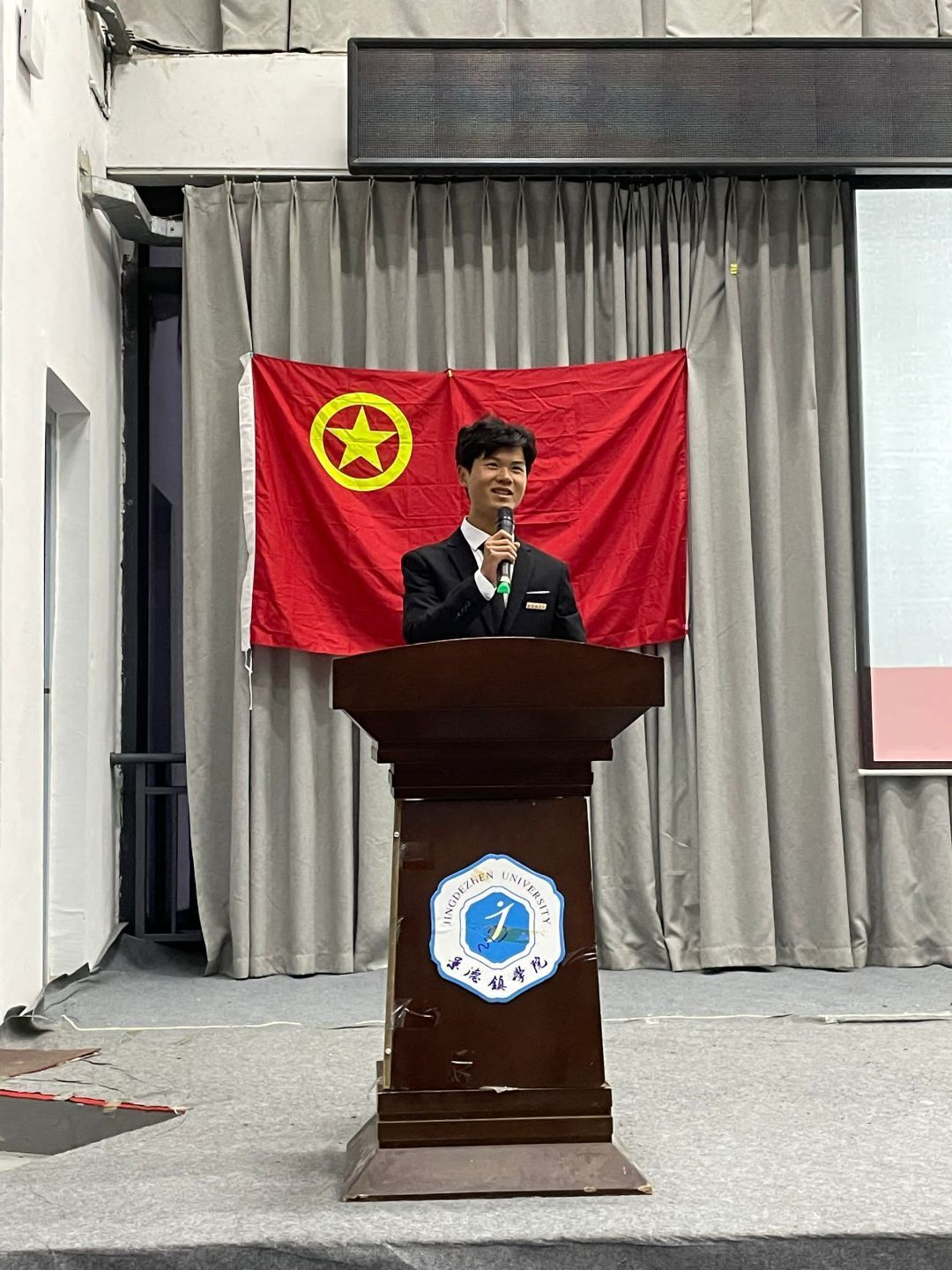 团委学生会新生优秀代表郑计柳韬同学发言。郑计柳韬同学表示将会充斥着满腔热情并认认真真的完成学生会的每一项任务且希望新一届学生会能在领导老师的关怀下,在学长学姐的带领下,在全体老师同学们的共同努力下,不断开拓创新,锐意进取,使我们的大家庭充满温馨和爱意,洋溢着蓬勃的生气,创造更璀璨的辉煌。