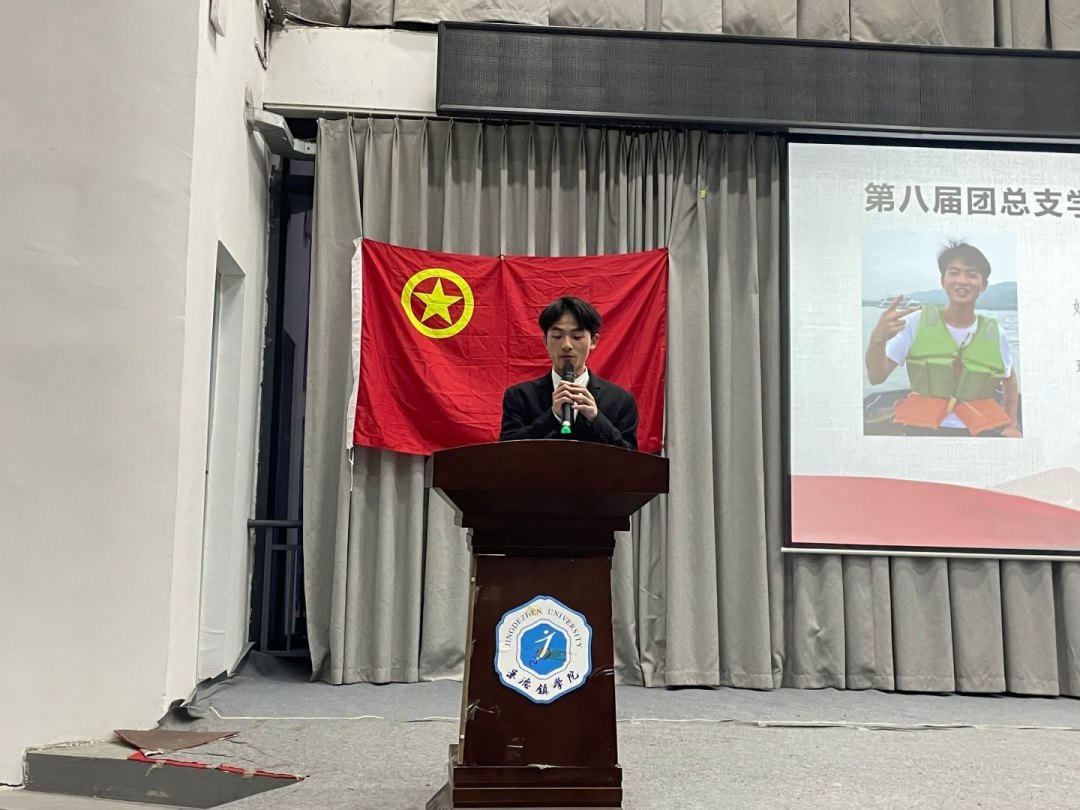 第八届团总支学生会团委副书记梁雄伟发表述职报告。首先表达了个人在加入学生会的感想,以及加入学生会后对自我成长的帮助。继而对团委的工作进行详细介绍,并指出正确思想政治的重要性,希望全体学生能坚持学习相关知识。