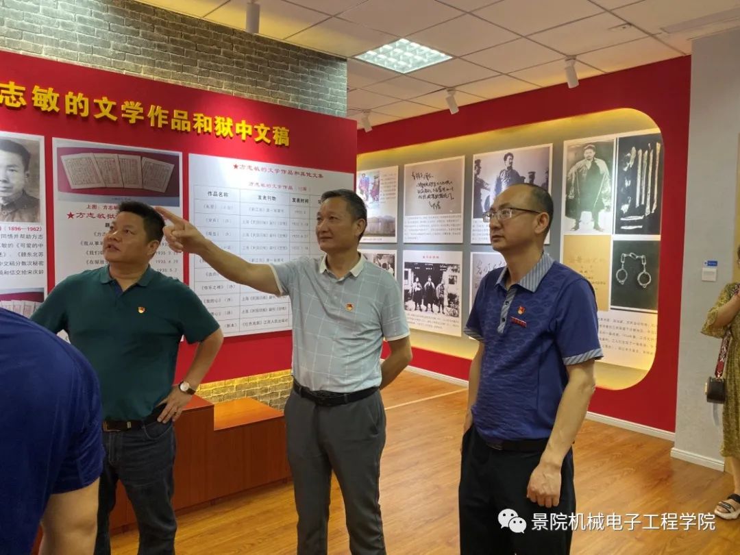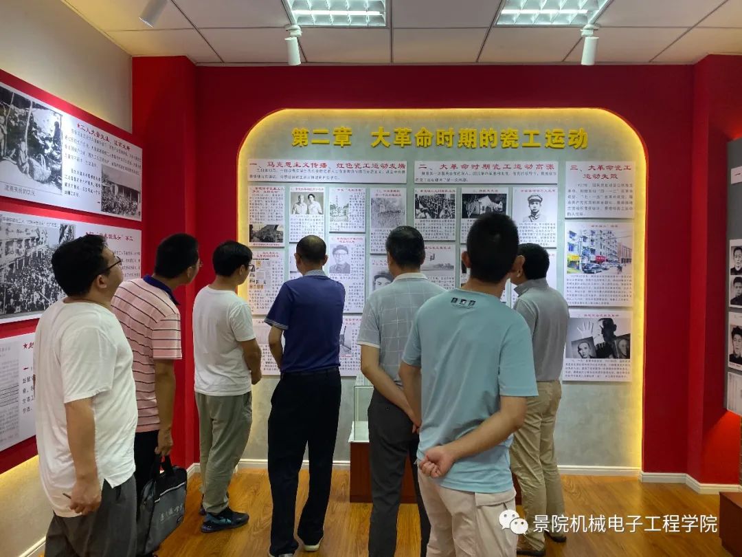 为庆祝中国共产党成立99周年,机电学院教工党支部于2020年7月3日组织全体教师党员前往景德镇区域红色精神展示室开展党日活动。全体党员老师重温党的红色革命历史,传承红色文化基因和弘扬爱国主义精神,厚植家国情怀,坚定共产主义信仰。