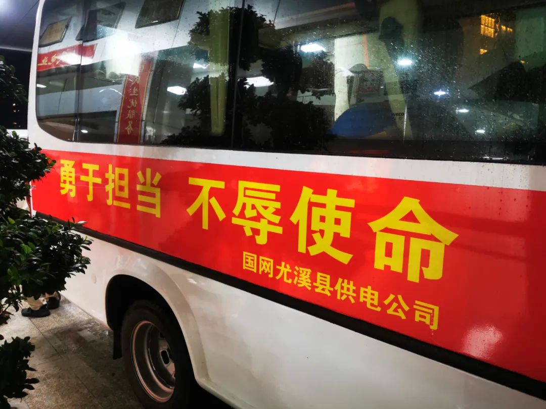 国网尤溪县供电公司第一时间集结跨区域支援抢修队伍31人,调配车辆6辆(其中随车吊1辆),携带发电机1台、便携式升降灯5台、链锯3把、救生衣10件以及施工器具和安全工器具。公司工会和后勤部门配备了应急药品、自热饭、桶面、凉茶等后勤物资。