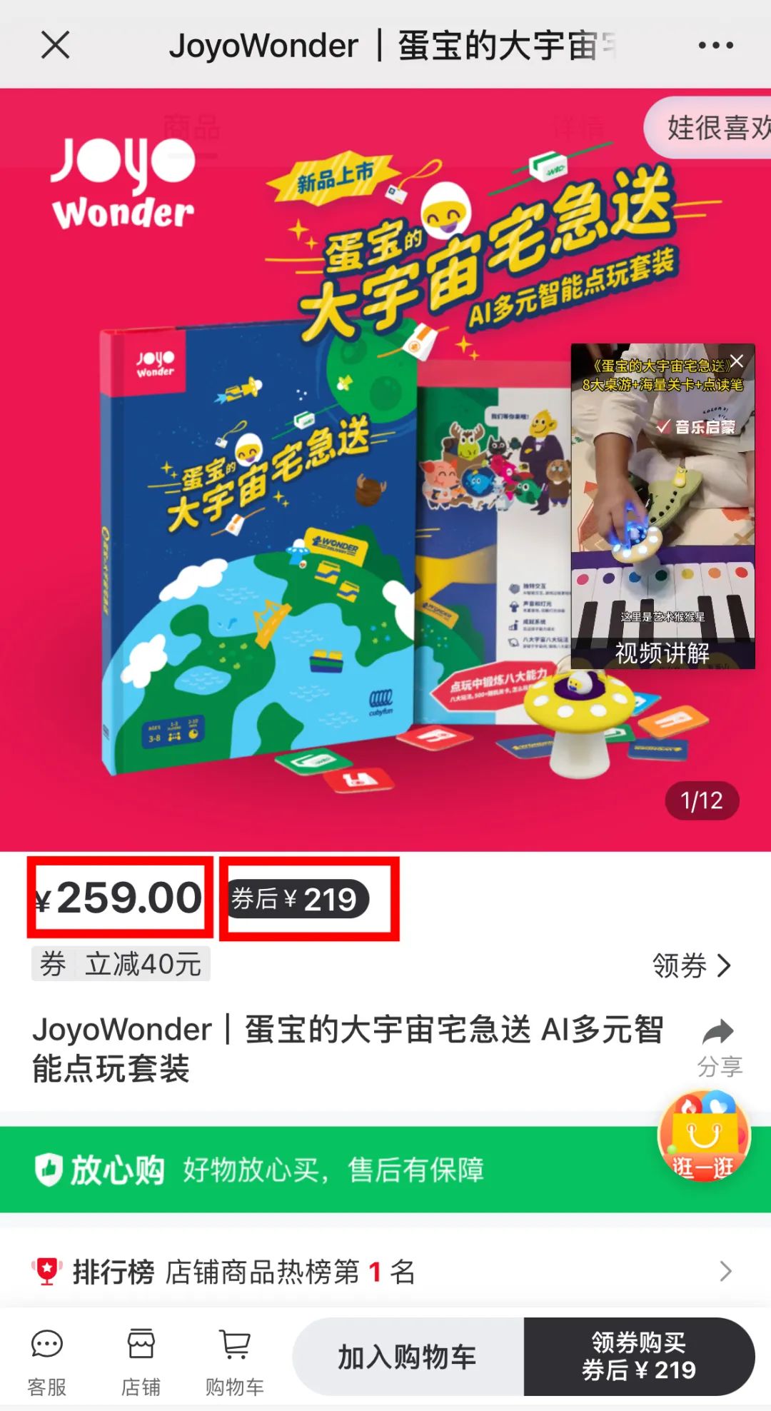 日常价 259 元,官方活动价 219 元: