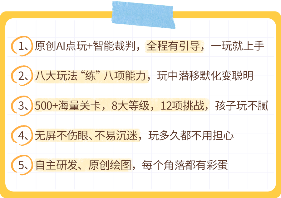 它的 8 大玩法,正是针对 8 项学龄前儿童的能力开发的: