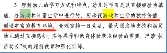 教育部颁发的《3~6 岁儿童学习与发展指南》中,明确提出:要在游戏和日常生活中,让孩子直接感知、实际操作和亲身体验,来学习和获取经验。