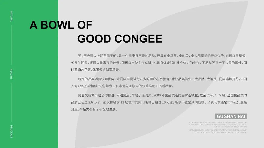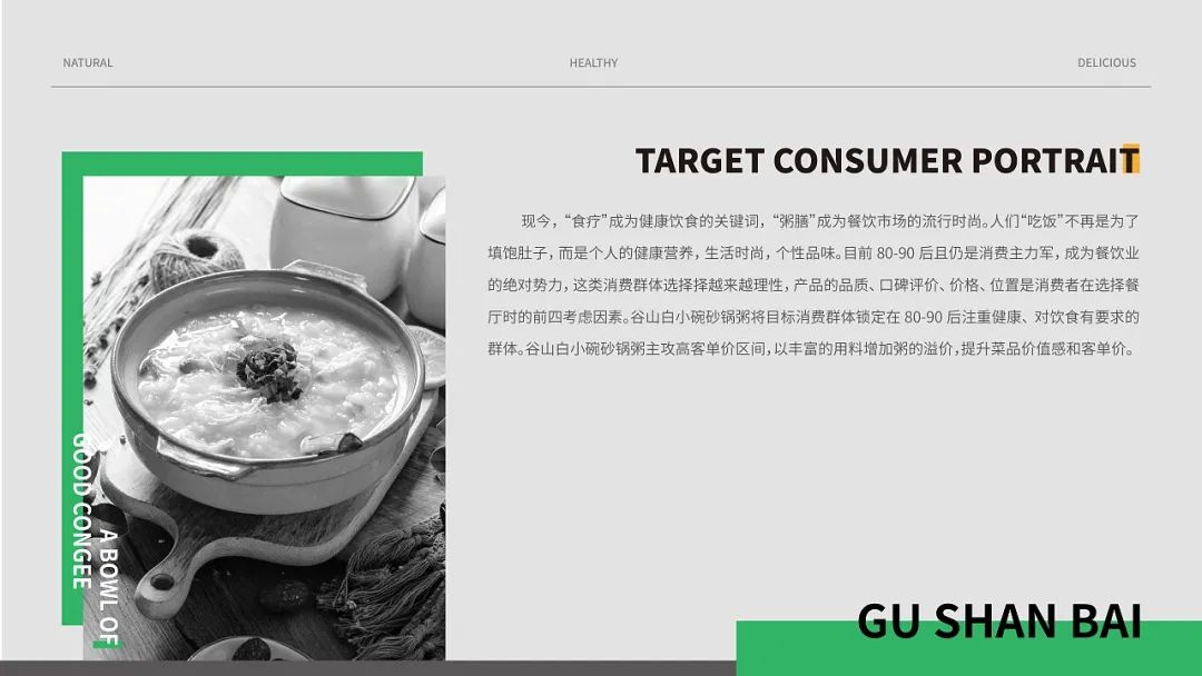 谷山白是主打小碗砂锅粥的粥铺,粥类产品已成为越来越多的人的日常消费品,而未来的粥类产品消费者普遍追求的是“新鲜”“健康”,而这种文化表现出来便是:让新鲜看得见,让新鲜更新鲜.让健康更健康,让营养更营养,要让消费者体验得到。谷山白秉持为顾客提供一碗好粥的理念,严格把控食材的原料选择,致力于做一碗天然、健康、鲜美的好粥。