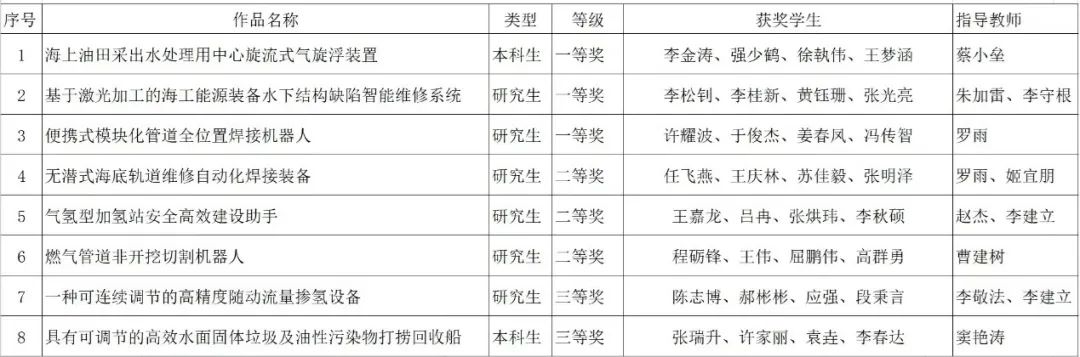 附:中国大学生机械工程创新创意大赛(第14届过程装备实践与创新赛)全国赛我校师生获奖项目