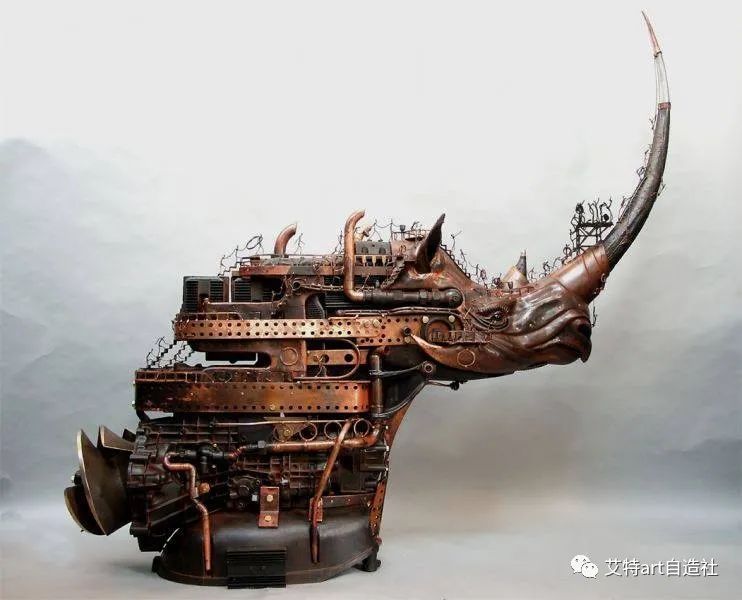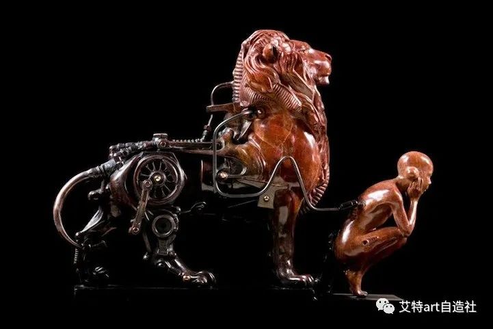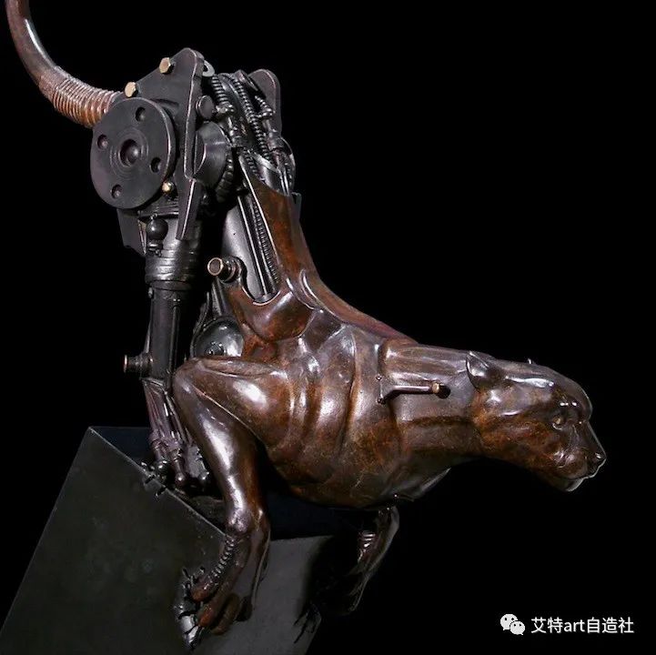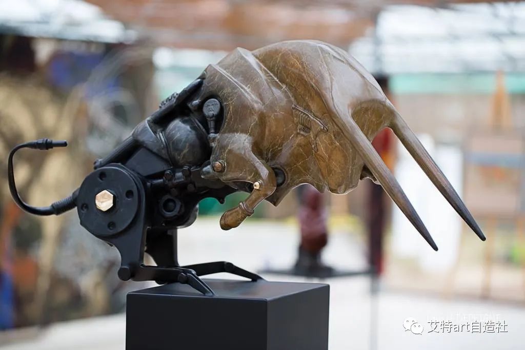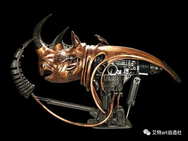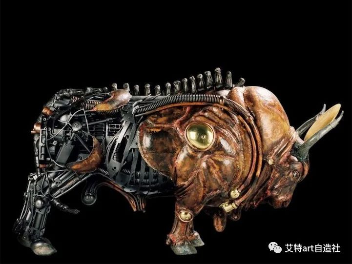 法国雕塑家皮埃尔·马特 (Pierre Matter) 的作品主题围绕着将有机和机械材料结合在一个实体中的超现实想法展开。他的雕塑反映了生物和动物的机器人进化,将它们的形象转变为多层机器人。这位艺术家神话般的机械化生物重新评估了人们在现实中解释生命形式的方式。艺术家说:“即使是山上的奶牛也不过是挤奶机。”
