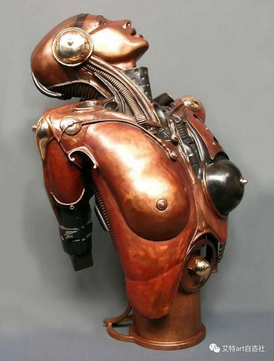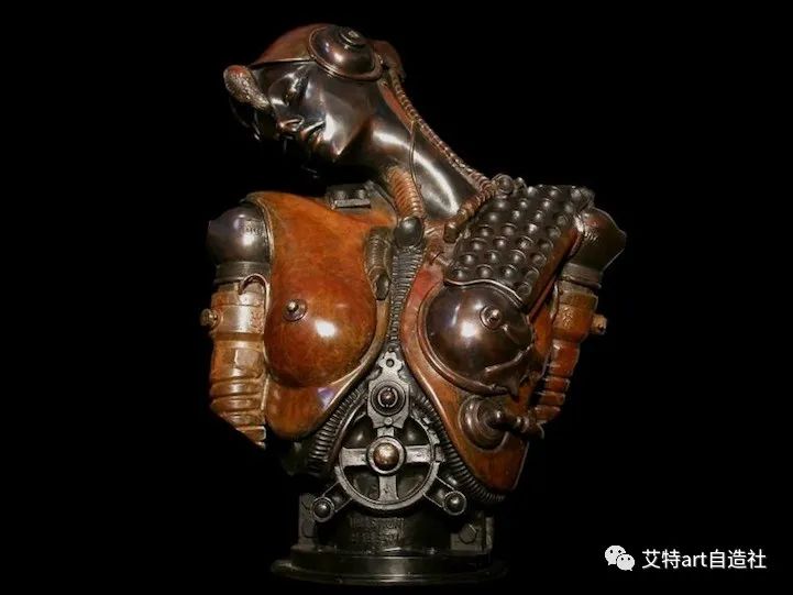马特补充道:“我将工业世界的齿轮、活塞、集成电路和其他配件融入生命、身体或面孔、我的雕塑的方式,直接遵循了近代人类生活的演变方式。当然,我们只是处于一个时代的开始,机器或嵌入生物体内的微型机器的使用很可能会变得普遍,但没有技术的现代生活已经完全不可想象。”