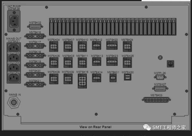 DEK印刷机的系统控制箱(machinecontrolenclosure)M36安放在DEK印刷机的背面,它是PC与印刷机的电机、传感器、开关之间交互的接口,PC与M36之间通过USB电缆相连接。