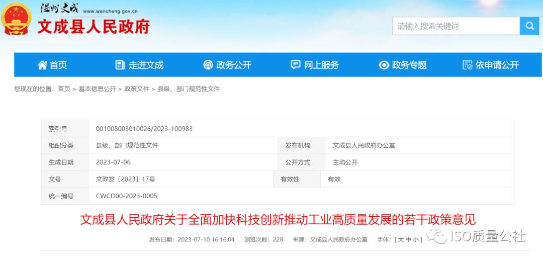 文成县人民政府关于全面加快科技创新推动工业高质量发展的若干政策意见
