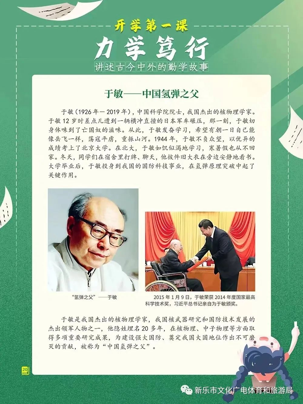 从古至今,凡有作为之人,无一不与勤奋有着难解难分的缘分。这些拥有卓越成就的名人,虽然努力的方法各有不同,但他们的勤奋习惯却是相同的。勤奋能塑造伟人,也能塑造更好的自己。正值新学期,为了激励广大学生塑造更好的自己,新乐市图书馆联合新乐市荟文中学开展了《开学第一课:力学笃行--讲述古今中外的勤学故事》线下图片展览活动。