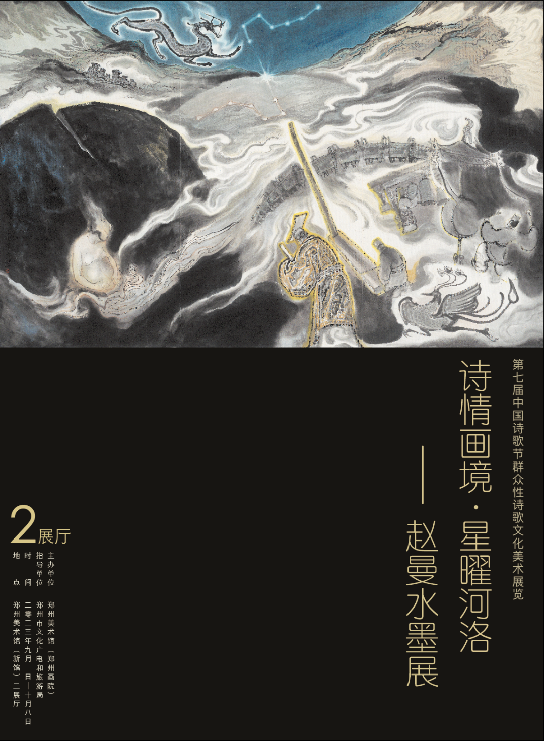 诗唱中华,赞古今文脉风华;墨画历史,传忆古考据之功。第七届“中国诗歌节”九月即将在郑开幕,恰逢郑州美术馆新馆开馆3周年,郑州美术馆特推出“诗情画境·星曜河洛—赵曼水墨展”,弘扬优秀传统文化,彰显中原艺术魅力,助力“文艺郑州”“书画郑州”发展建设。