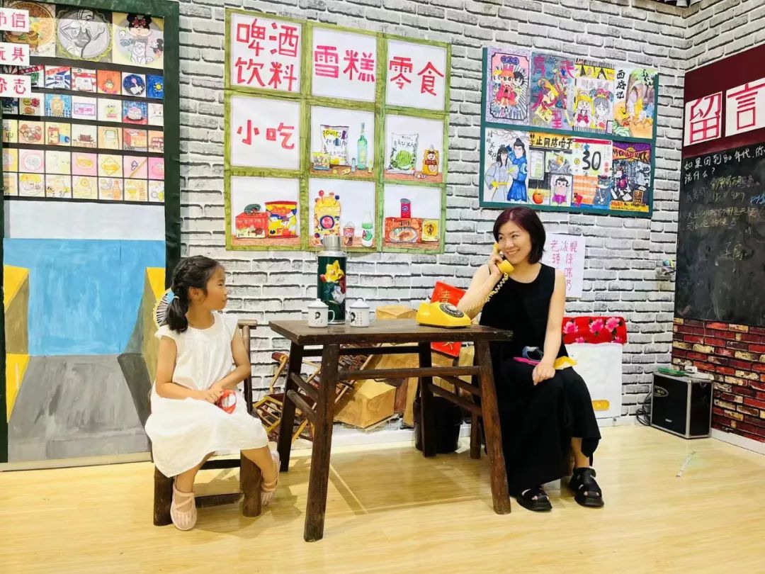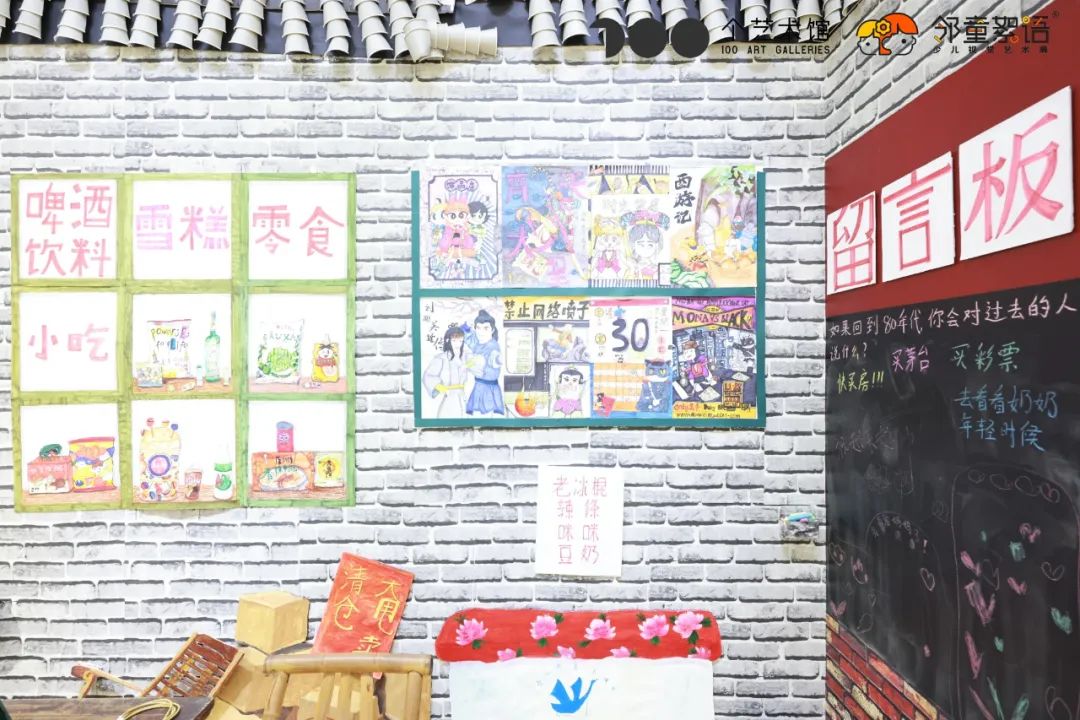 这是孩子们打造的一个复古的杂货铺空间,带观众“穿越”回8090年代。
