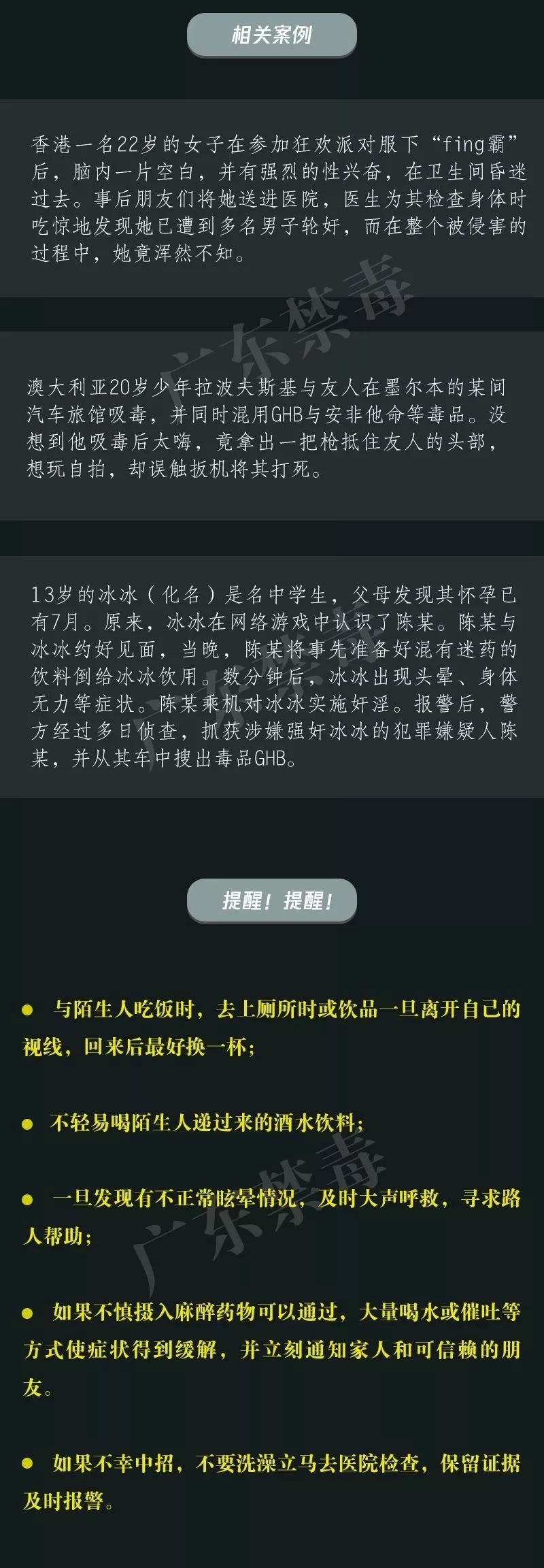 得到线索后,梅县区警方高度重视,立刻展开调查,为获得有效证据,民警化装到娱乐场所内进行摸查,并花费500元购得一瓶375毫升、包装无任何标志的黄色饮料。后经送专业机构检测,发现该饮料含有γ-羟基丁酸(我国一类精神药品),食用后会产生昏睡感或飘飘然的感觉,甚至影响中枢神经。