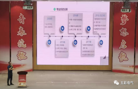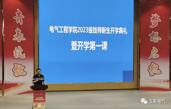 在开学典礼上,课程专业带头人张雪标、王佩两位老师深入介绍了电气安装与工业机器人专业的培养目标、课程体系、教学方式以及发展前景等内容,生动诠释了政产学研用一体化发展的协同新模式,以及建立的“课程+科研+实践+大赛”的育人机制等特色路径,为新生们带来了一场不一样的职业教育启蒙。
