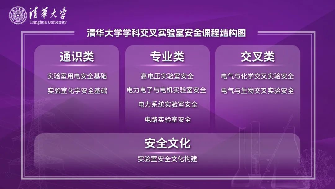 清华大学强交叉性的教学与科研环境十分突出。以典型的电气工程学科为例,电气与化学、材料、生物等学科交叉日益明显,实验内容发生深刻变革。电气安全是各类实验最普遍的安全问题之一,而化学、生物实验危险性较大,容易酿成事故。对于电气工程专业背景的学生,如果缺乏深入的电气安全专业知识培训,或者缺乏化学、生物等交叉学科的安全基础知识培训,则实验风险较大。