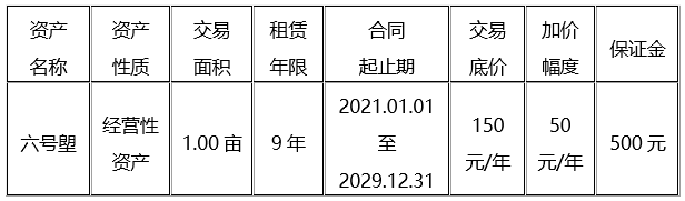 江门市新会区古井镇农村集体资产资源交易中心受新会区古井镇慈溪村四南经济合作社委托,将对位于慈溪村四南经济合作社-六号塱使用权租赁进行竞投,欢迎有意参加竞投的人仕前来报名竞投。