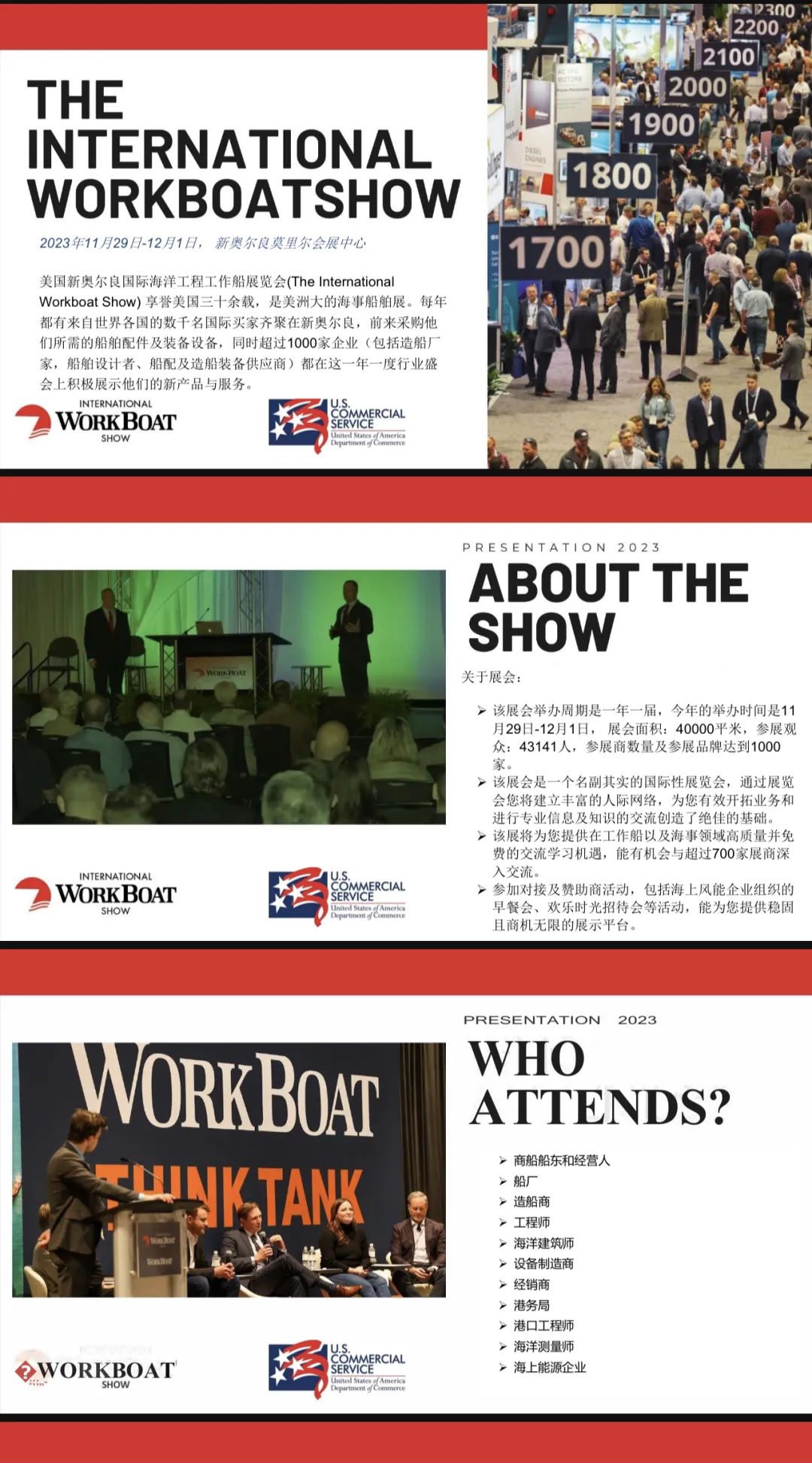 美国新奥尔良国际海洋工程工作船展览会(The International Workboat Show)享誉美国三十余载,是美洲大的海事船舶展。每年都有水自世界各国的数千名国际买家齐聚在新奥尔良,前水采购他们所需的船舶配件及装备设备,同时超过1000家企业(包括造船厂家,船舶设计者、船配及造船装备供应商)都在这一年一度行业盛会上积极展示他们的新产品与服务。
