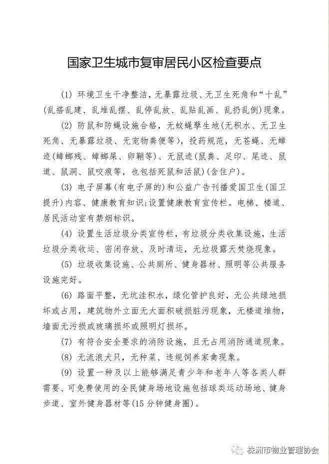 市住建局物业事务中心张志刚副主任传达市住建局会议精神,部署国家卫生城市复审工作,根据相关文件要求,针对居民小区提出9点要求(检查要点附后),请各物业企业务必严格按照检查要点做好各项工作。街道社区、行政主管部门及协会也会到项目进行检查和督查。