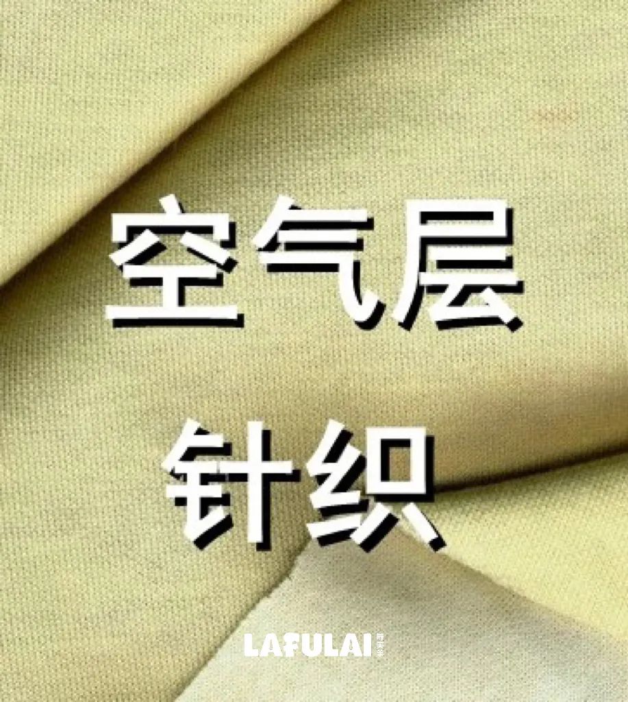 空气层面料是目前最流行面料之一,材料有涤纶,涤氨纶,涤棉氦纶等。空气层面料的保暖性能十分优异,其结构设计成里层、中层、外层的复合组织,并且保持了中间层是中空的结构,能有效地隔离空气来达到保暖的效果。空气层面料一般采用纯棉氨纶、棉涤氨纶交织的方式来织造,所以空气层棉具有针织棉吸湿保湿、透气效果好的优点。但是,因为空气层面料较厚,在日常洗穿过程中必须要悬挂、不能折叠储存,否则会出现折痕很长时问难以恢复而影响到服装的美观。如果是全涤成分的空气层布要注意勾丝的情况,应避免尖锐物体触碰面料表面。