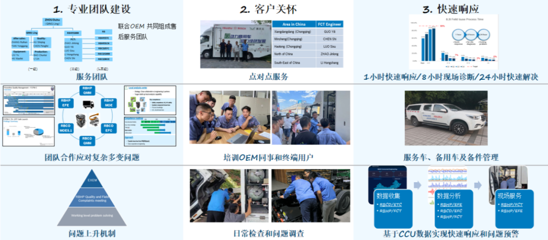 会上,博世汽车柴油系统股份有限公司代表分别 从氢能源运输车辆的车型参数、产品性能指标、技术优势、应用领域、售后服务、安全性能等方面进行详细介绍。