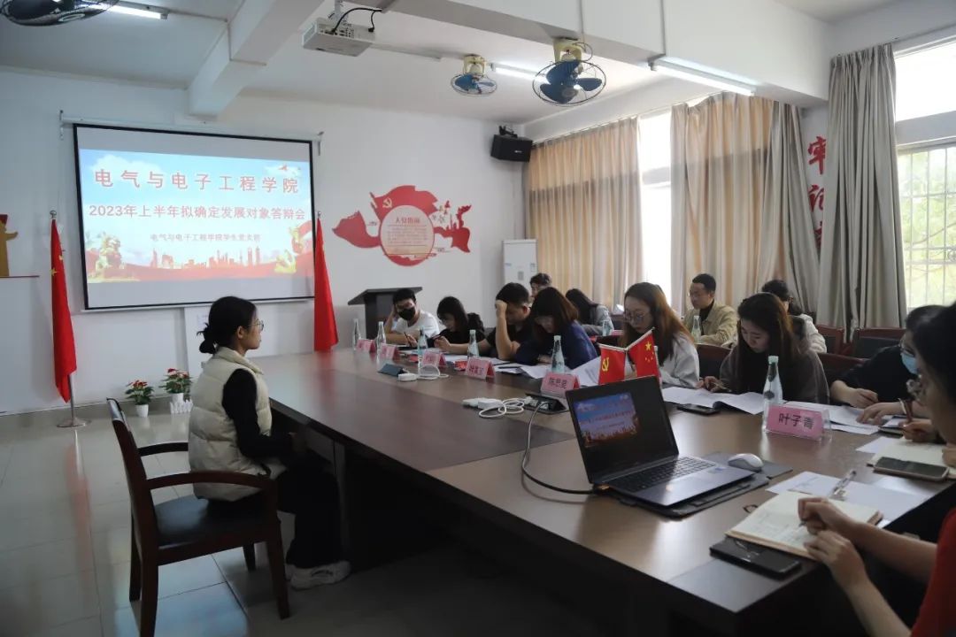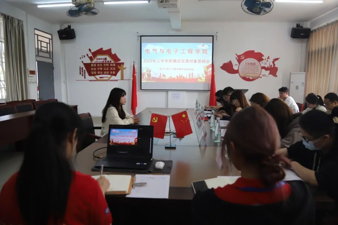 根据《中国共产党发展党员工作细则》和学校有关文件规定,为考察拟发展对象的入党动机以及其成为入党积极分子以来的表现与成长,进一步做好学生党员发展工作,确保发展党员质量,电气与电子工程学院学生党支部在2023年3月6号中午7栋203室举行2023年上半年拟确定发展对象答辩会,此次答辩会由电气与电子工程学院学生党支部书记叶运黎担任答辩组长,全体辅导员担任答辩组员,2023年上半年拟确定发展对象参与答辩。