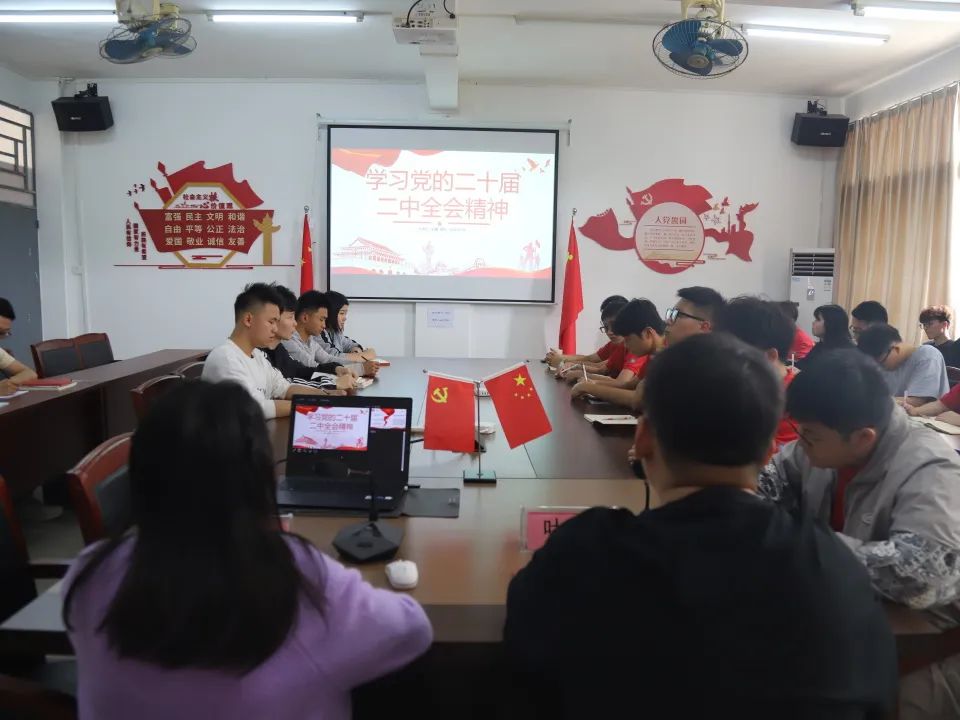 为了推动新时代青年工作高质量发展,使党的二十大精神真正深入人心、贯彻落实到位,2023年3月10日中午,电气与电子工程学院学生党支部在7栋203室组织学习党的二十届二中全会,学生党支部宣传委员胡涵主讲,学生党支部书记叶运黎,在校学生党员、学生党建工作中心干事参与学习。
