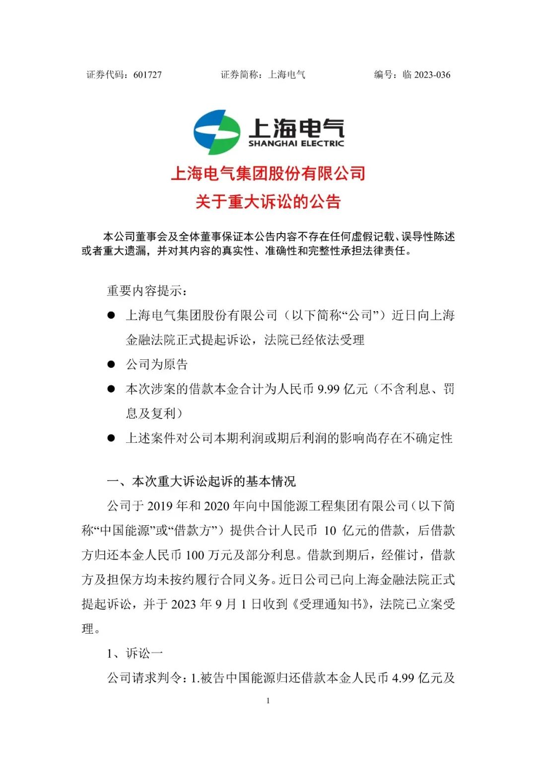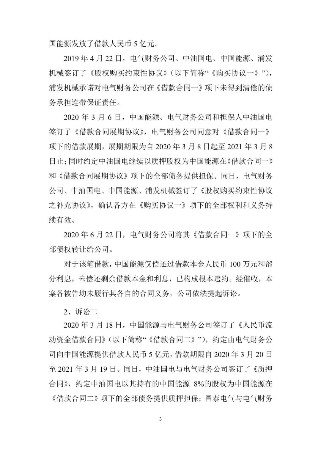截至2023年6月30日,公司对中国能源账面其他应收款余额为人民币7.03亿元,其中借款本金人民币9.99亿元,应收利息人民币0.16亿元,累计计提信用减值损失人民币3.12亿元。