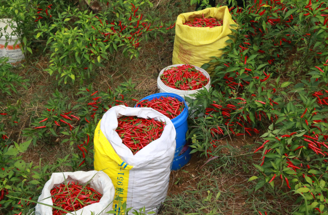 “我今年种100亩辣椒,现在辣椒红了,每天都有10多个人帮我摘辣椒,预计产量10万斤,产值20多万元,支付工人工资12万元。”曾宪超说。