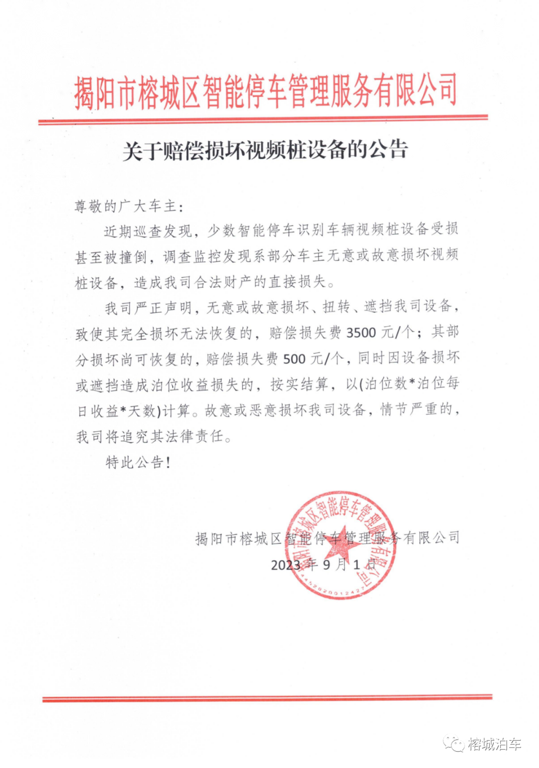 智能停车设备遭破坏,泊车要求照价赔偿!单个最高赔偿3500!