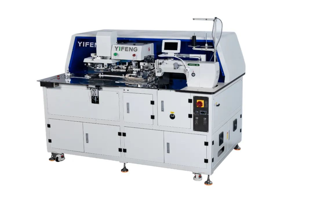 机器配备了断线自动停止、自动计数、花样自动存储、自动夹线、自动松线、自动线芯仓门、自动内压框伸缩、自动吸风等装置。夹具换装简单,针对厚料附可调试夹具来适应机型。可伸缩式内压脚有效控制,固定缝品,增加缝制过程中的稳定性,确保缝品线迹美观流畅。