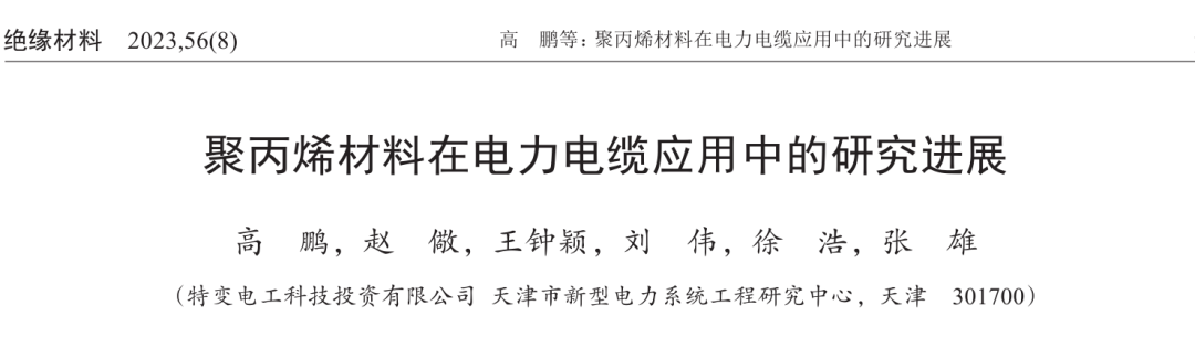 本文发表在《绝缘材料》2023年第56卷第8期,论文链接:聚丙烯材料在电力电缆应用中的研究进展