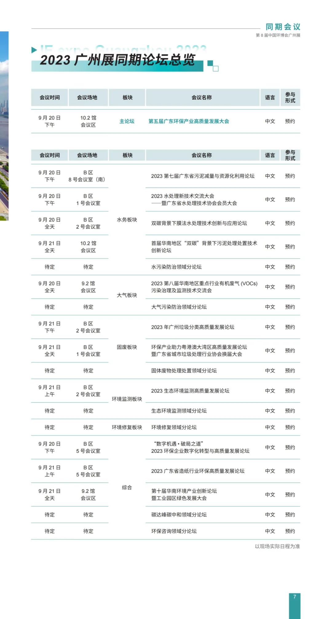 在第8届中国环博会广州展同期,主办方将携手广东省环境保护产业协会,共同打造“第五届广东环保产业高质量发展大会”,大会涵盖1场主论坛+18场行业细分领域专业论坛及10余场产业解读、新品发布及专场对接会等丰富的同期活动。