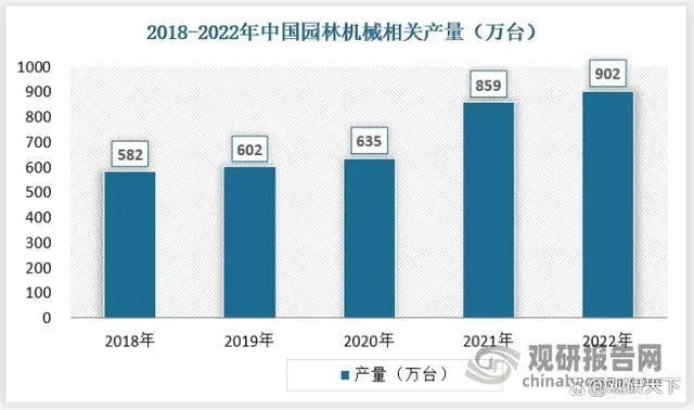 根据观研报告网发布的《中国林业设备行业发展趋势分析与投资前景预测报告(2023-2030年)》显示,我国林业设备行业相关产品产量呈不断上升趋势,尤其是在2020年疫情之后产量大幅增长。从相关产品产量来看,木工、园林等用手提式电动工具产量最高,其次为园林机械相关产品。由于园林机械是林业设备行业最大的需求市场,并且单价较低、更换周期短,因此园林行业相关产品产量较高。