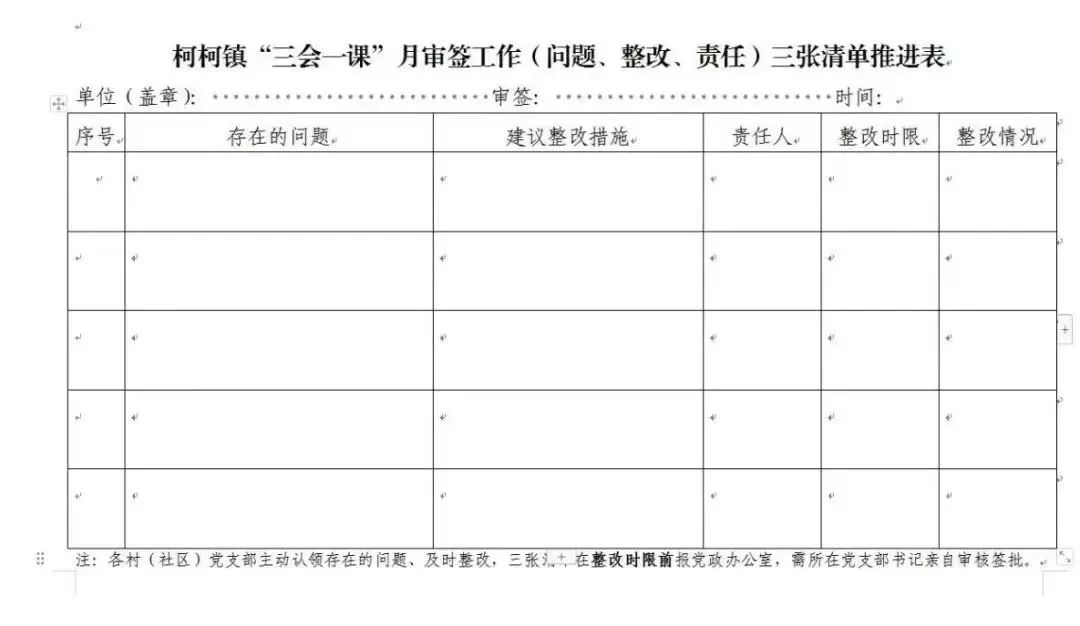 探索打造“三会一课”审签制品牌,政治生活规范有序。把“三会一课”纳入年度全县基层党建工作任务清单,列为党组织书记抓基层党建述职评议内容,建起以党组织书记为第一责任人、分管领导为直接责任人和各党组织密切协作的工作责任机制,探索实施“周自查+月签阅+季调度”闭环审签工作机制,开展“五查”工作法,党支部书记每周对党员学习笔记记录、支部会议记录等进行自查自签,党委(组)书记、组织委员每月对支部会议、党课记录等开展审阅审签,组织部每季度调度各党(工)委签阅落实情况,结合线上提醒督办和线下调度督查将发现问题反馈到人,确保审签工作见人、见事、见效,确保用新机制、新办法推动基层党组织政治生活规范化、科学化、时效化。