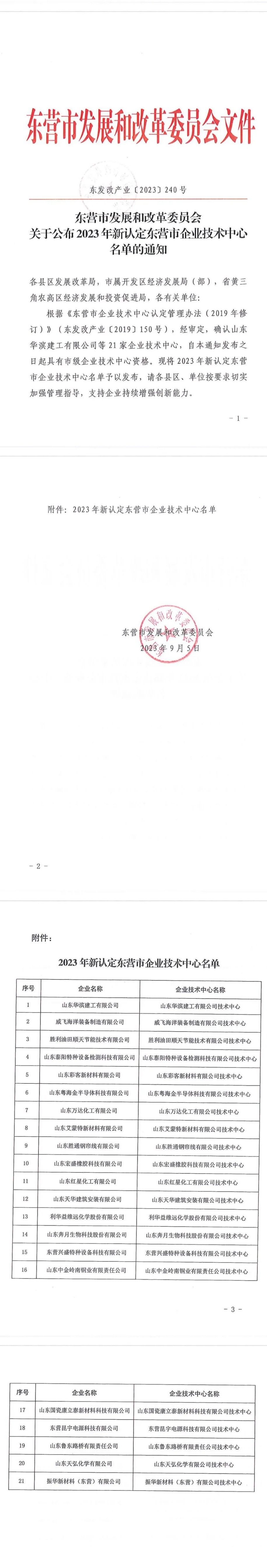 东营市丨关于公布2023年新认定东营市企业技术中心名单的通知