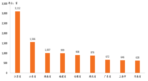 从我国智能制造行业竞争格局来看,我国长三江地区江苏省的制造企业整体智能化程度较高。根据中国电子技术标准化研究院的数据显示,江苏的制造企业整体智能化程度较高,2022年有3,112家企业达到智能制造能力成熟度二级及以上水平,位居国内首位。其次是山东、湖南、福建、安徽、湖北、广东、上海和河南,智能制造能力成熟度二级及以上水平的企业数量分别有1,566/1,007/999/908/876/672/646/628,数量均在500家以上。