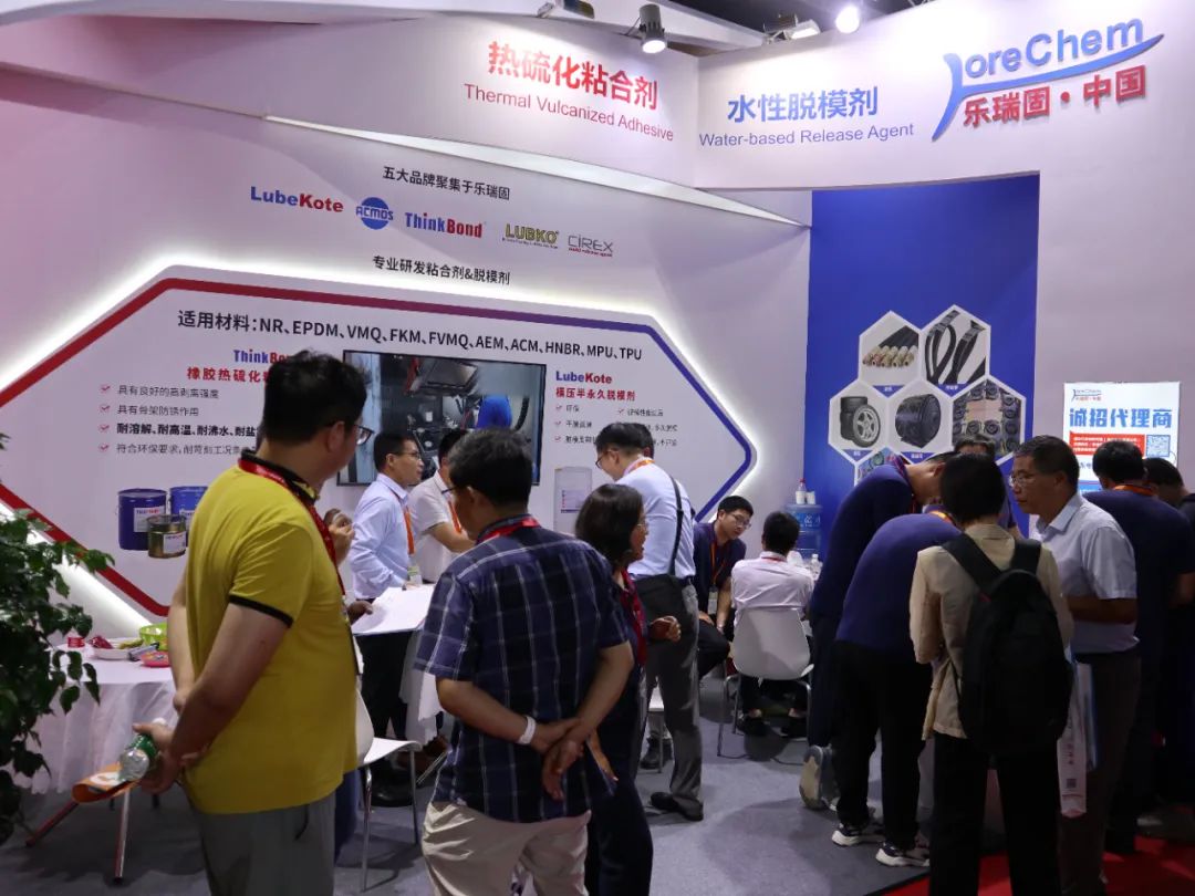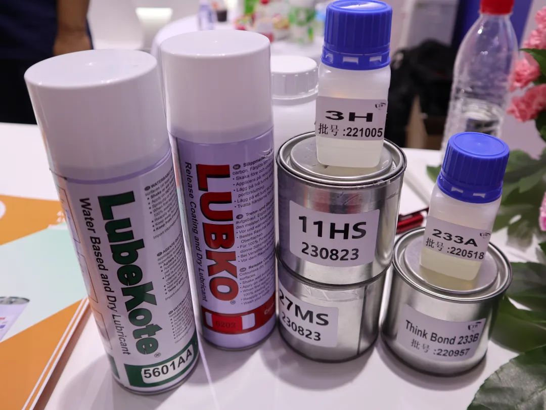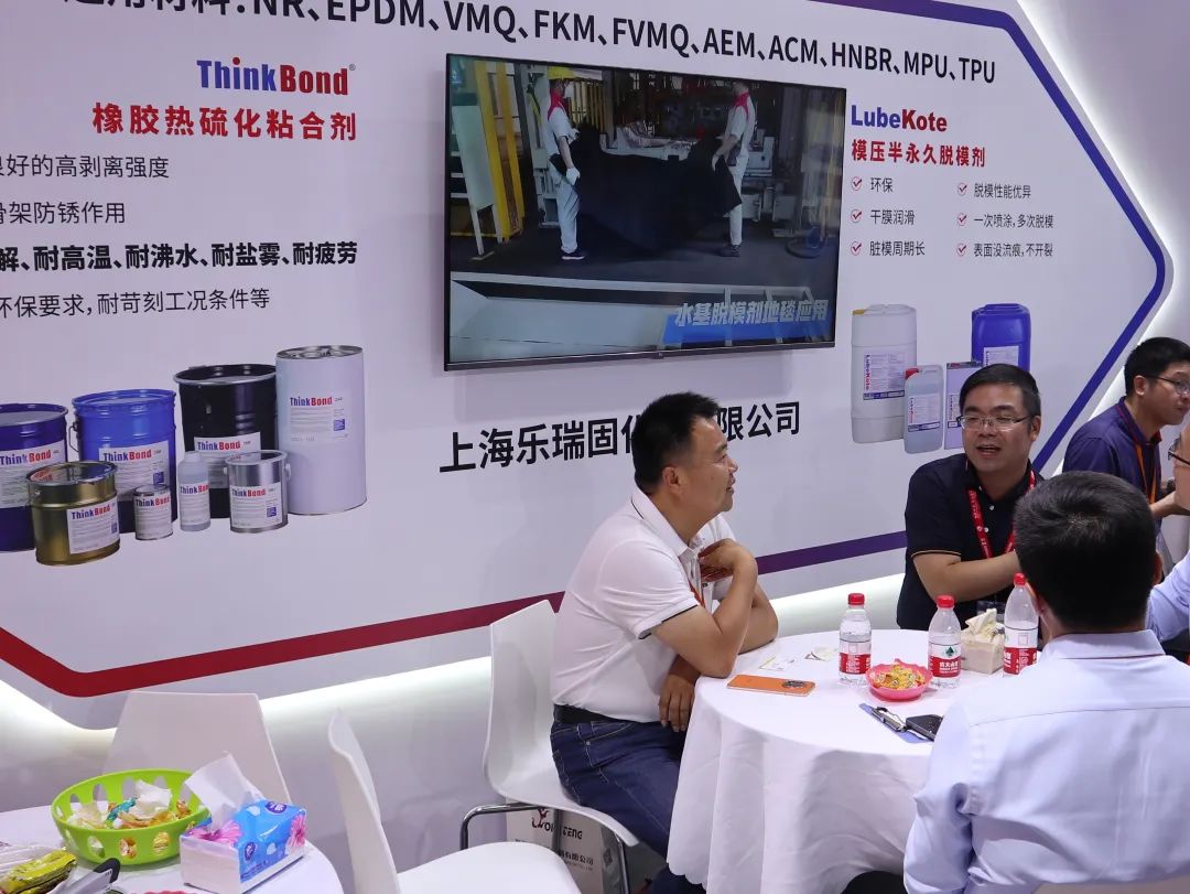乐瑞固:这次展会我们主要带来了乐瑞固的半永久脱模剂、橡胶热硫化粘合剂等主打产品。包括ThinkBond橡胶热硫化粘合剂、LubeKote模压半永久脱模剂。比如,乐瑞固热硫化粘合剂是由欧洲引进的先进的高性能产品,单涂、双涂、高性能、水性、无色产品都有,产品广泛应用于橡胶和聚氨酯行业与各类基材的粘结,产品满足时代对环保、高性能、耐环境性等要求,在橡胶、聚氨酯行业广泛应用于汽车、工程减震、道路运输及家电等行业。我们的脱模剂、粘合剂产品型号高达500多种,总有一款适合您!